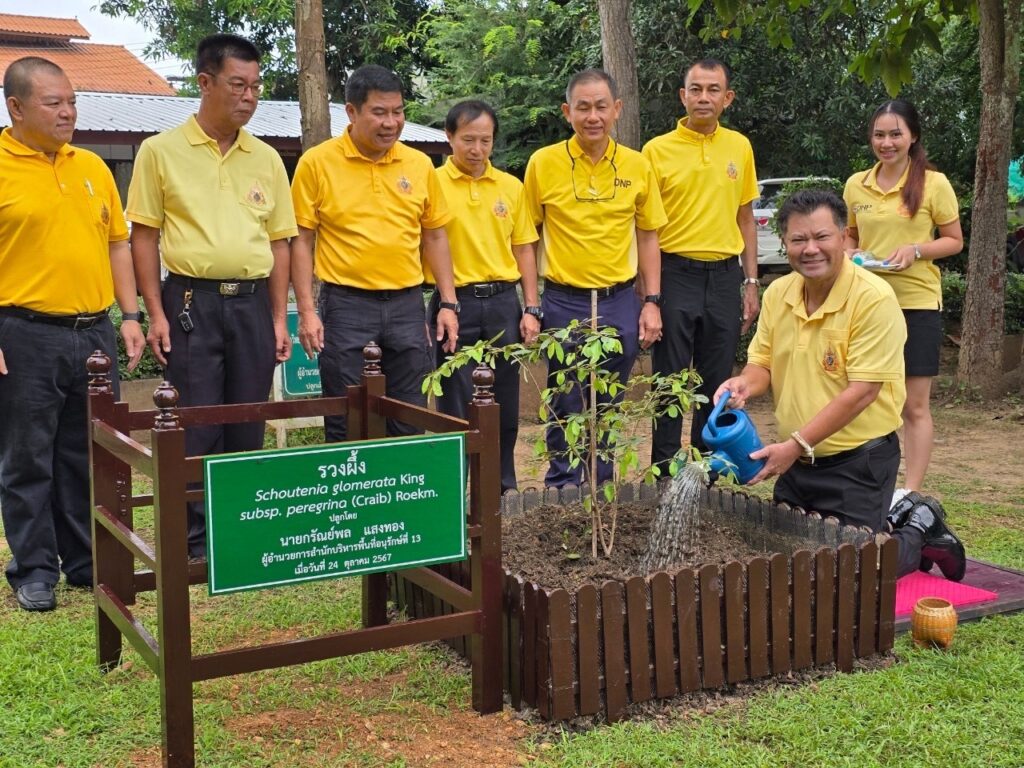 วันที่ 24 ตุลาคม 2567 เวลา 08:00 น. นายกรัณย์พล แสงทองผู้อำนวยการสำนักบริหารพื้นที่อนุรักษ์ที่ 13 พร้อมด้วยผู้อำนวยการส่วนแต่ละส่วนและเจ้าหน้าที่ในสังกัด ร่วมเคารพธงชาติบริเวณหน้าอาคารสำนักบริหารพื้นที่อนุรักษ์ที่ 13 (แพร่) พร้อมจัดพิธีเปิดกิจกรรมวันรักต้นไม้ประจำปี 2567 โดยวัตถุประสงค์ของการจัดกิจกรรมบำรุงรักษาต้นไม้ที่ปลูกไว้ตามโครงการและสถานที่ต่างๆให้เติบโตแข็งแรงดังที่สมเด็จพระศรีนครินทราบรมราชชนนีทรงให้ความสำคัญกับการปลูกต้นไม้และบำรุงรักษาต้นไม้ที่ปลูกแล้ว ด้วยพระองค์เองมาตลอดพระชนม์ชีพ จึงทำให้คณะรัฐมนตรีมีมติเมื่อวันที่ 16 พ.ศ. 2533 กำหนดให้วันที่ 21 ตุลาของทุกปี ซึ่งเป็นวันคล้ายวันพระราชสมภพของสมเด็จพระศรีนครินทราบรมราชชนนี เป็น”วันรักต้นไม้ประจำปีของชาติ“